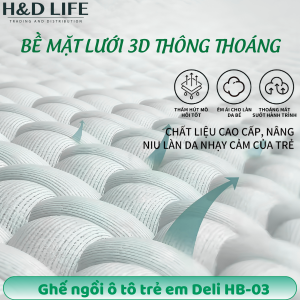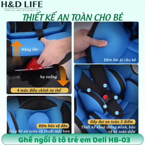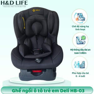 HB-03 là dòng sản phẩm thuộc phân khúc phổ thông – tầm trung, được phân phối bởi Ghế Trẻ Em Deli. Mẫu ghế được Deli cung cấp với mong muốn là một giải pháp  rõ ràng, dễ sử dụng và phù hợp với nhu cầu di chuyển hằng ngày của gia đình có các bé nhỏ.