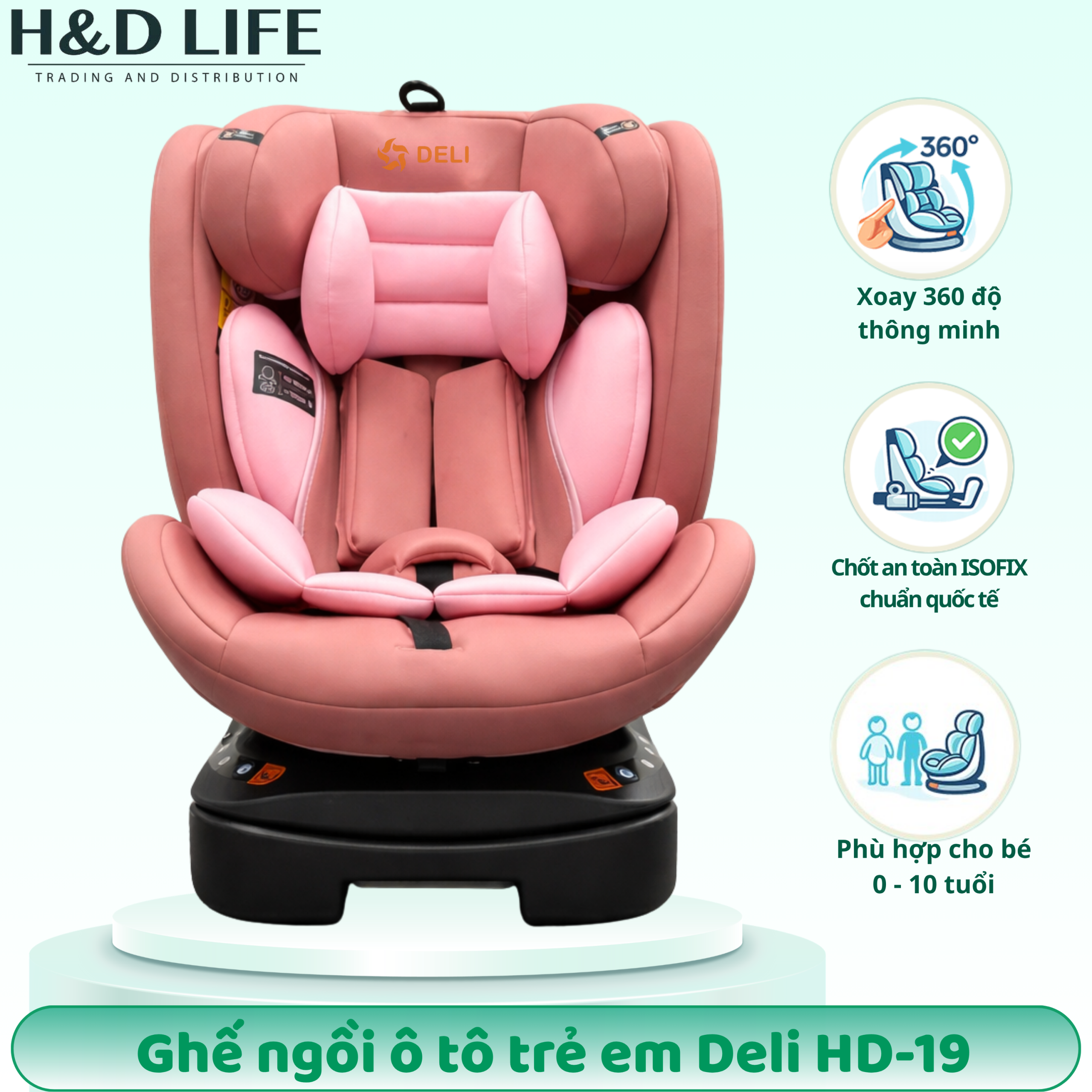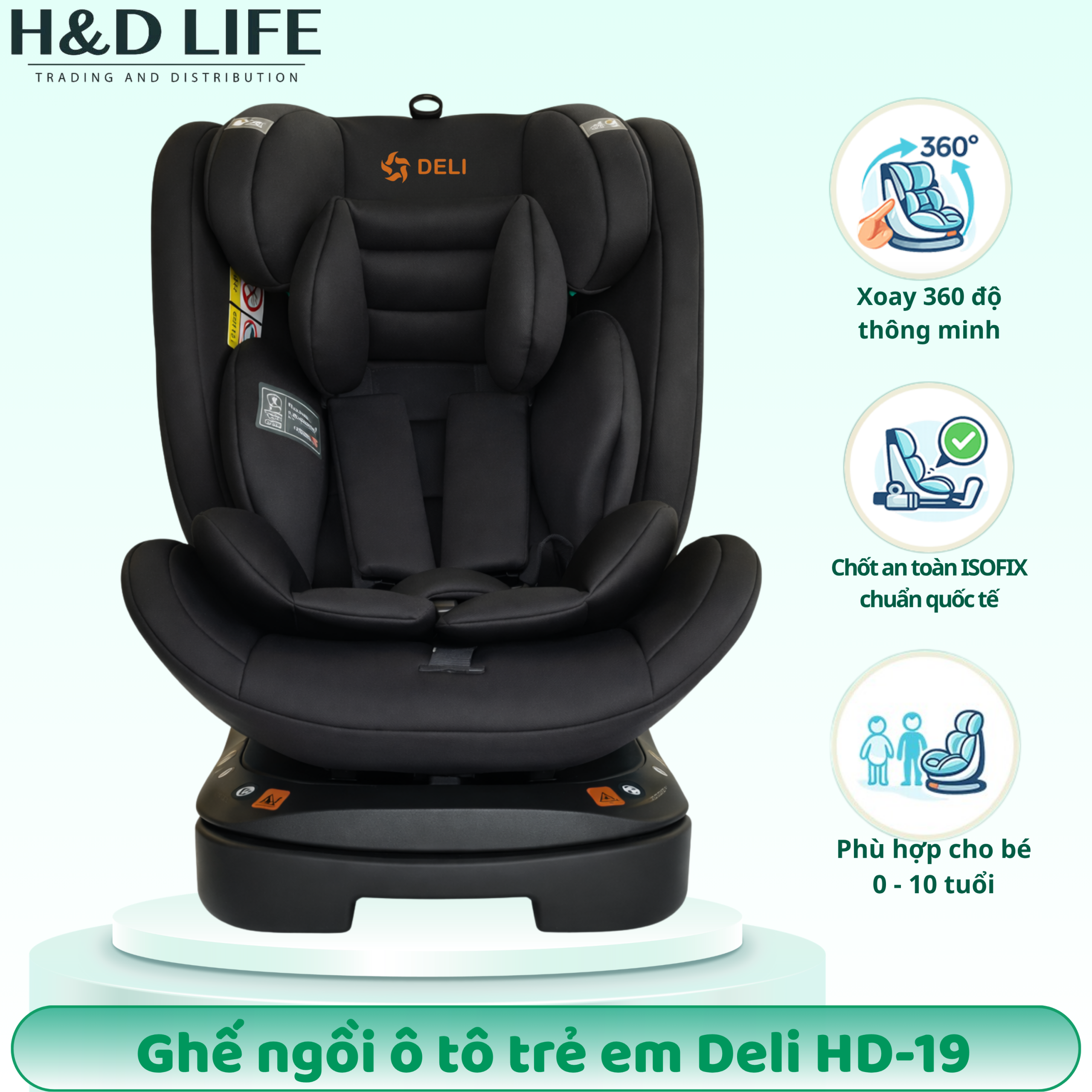 Ghế Trẻ Em Deli cung cấp HD19 với thông tin rõ ràng và hướng dẫn sử dụng chi tiết. Khách hàng được tư vấn dựa trên độ tuổi, cân nặng và loại xe để chọn đúng ghế trẻ em ô tô phù hợp.